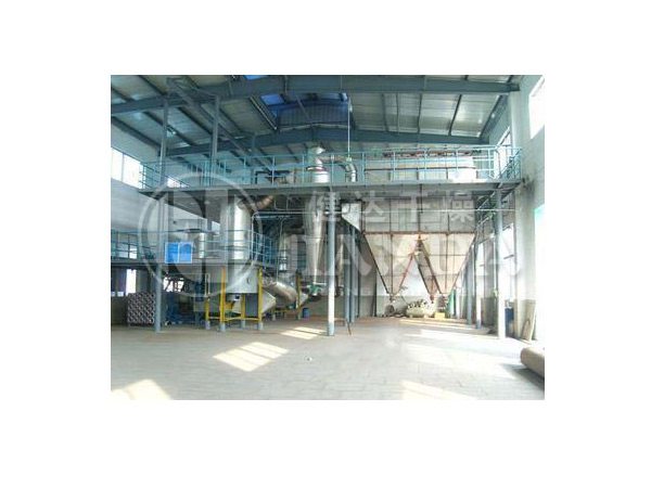 根據(jù)PVB的物料特性,健達(dá)干燥采用旋轉(zhuǎn)閃蒸干燥機(jī)來(lái)干燥PVB,整套設(shè)備采用蒸汽加熱,干燥處理能力為800Kg/h,可將初水分35%的濕物料烘干至1.5%以下,由于物料是熱敏性物料,所以干燥機(jī)的主機(jī)夾套水冷卻,由于物料承受溫度較低,則進(jìn)風(fēng)溫度較低,所以主塔加高一節(jié),以延長(zhǎng)物料干燥時(shí)間,整個(gè)系統(tǒng)物料接觸處為不銹鋼制作,其余為碳鋼制作。尾氣處理系統(tǒng)主要由旋風(fēng)分離器、布袋除塵器及引風(fēng)機(jī)組成,通過(guò)旋風(fēng)分離器及布袋除塵器對(duì)尾氣中的粉塵進(jìn)行處理。